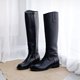 冬季新款圆头平底女士长靴黑色拉链高筒靴长筒靴马靴骑士机车靴女