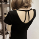 短袖女T恤夏季新款纯棉黑色镂空露背性感宽松大码休闲纯色T恤上衣