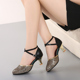 拉丁舞鞋女式成人中跟高跟广场舞蹈鞋夏季广场舞交谊摩登跳舞女鞋