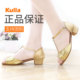 kulla金色拉丁舞鞋少儿童中跟软底小孩幼儿女童国标低跟舞蹈鞋