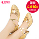 爱俏尔拉丁舞鞋女成人交谊广场舞蹈跳舞凉鞋金色中跟夏软底练功鞋