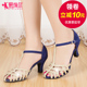 爱俏尔拉丁舞鞋成人中低跟广场舞蹈鞋夏季女款交谊舞跳舞凉鞋2017