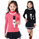 2016秋新款女童假两件卡通针织羊绒衫童装韩版儿童套头衬衫领毛衣