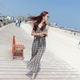 2017夏装新款小清新碎花吊带沙滩裙显瘦一字领漏肩雪纺连衣裙学生