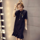 睡裙女夏纯棉短袖韩版中长款睡衣女夏季黑色显瘦卡通笑脸家居服女