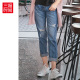 三福2017女夏季新品磨破牛仔裤 修身显瘦百搭长裤 368809
