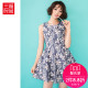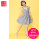 三福2017夏装新品女碎花无袖连衣裙 露腰修身裙女 370709