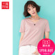 三福2017夏装新品女破洞短袖T恤 修身印花百搭打底衫上衣女370708