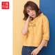 三福2017夏装新品女纯色连帽卫衣 字母中袖宽松上衣T恤女潮368850