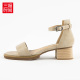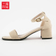 三福2017一字带中跟凉鞋女夏舒适休闲百搭粗跟露趾女鞋370369