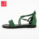 三福2017女夏交叉露趾时尚凉鞋沙滩女韩版鞋子休闲平底鞋758623