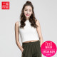 三福2017春装新品女百搭小高领修身背心无袖螺纹坑条打底衫367611