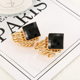 镶钻正方形圆圈流苏假耳环无痛女耳钉无耳洞耳夹饰品