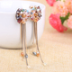 韩版气质锆石长款耳环女水滴流苏耳钉女 防过敏耳饰品 无耳洞耳夹
