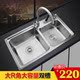 厨房水槽304不锈钢拉丝大双槽洗碗菜盆水池厨盆加厚配水龙头 套餐