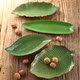 正品创意 仿古陶瓷韩式绿叶子长盘点心盘西餐盘 厨房餐厅餐具套装