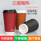 8/12/16一次性双层隔热加厚纸杯 咖啡纸杯 奶茶打包纸杯带盖100套