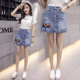 2017夏韩版花朵刺绣牛仔裤毛边磨破高腰浅色修身显瘦百搭短热裤女
