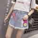 2017夏季韩版超萌卡哇伊卡通蝴蝶结挂饰裤裙式牛仔高腰时尚短裤女