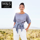 新M&S/马莎 女亚麻质前系带半袖茧型衬衫上衣 T432095 广