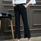 情心雨2017春新款高腰微喇叭裤女韩版开叉阔腿裤夏显瘦大码九分裤