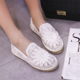 春季新款水钻网纱平底鞋草编麻绳渔夫鞋松糕厚底女鞋蕾丝休闲单鞋