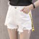 牛仔短裤女夏2017新款高腰磨破洞学生韩版宽松显瘦白色毛边热裤薄