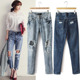 欧美范2016春夏新款BF风破洞牛仔裤女宽松显瘦九分小脚牛仔乞丐裤