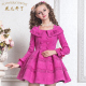 花儿开了冬装长袖修身风衣加厚娃娃领麂皮绒外套女甜美双排扣大衣