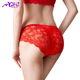 爱晴柔性感内裤女棉质面料中腰蕾丝大码本命年三角裤女士大红裤头