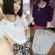 2016新款女装宽松短袖蕾丝拼接雪纺衫夏季露肩T恤上衣韩版学生潮
