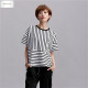 圣莫特女装 2017夏季新款条纹宽松T恤 大码不对称个性胖geMM上衣