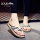 2017夏季新款大码时尚韩版厚底坡跟一字拖鞋女防滑平底沙滩凉拖鞋