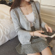 优资莲春秋季新款毛衣外套韩版短款上衣钉珠V领长袖针织衫开衫女