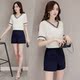 2017夏季新款套装韩版休闲两件套民族风v领花边短袖上衣配短裤女