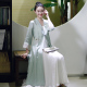 佛笑缘之一曲清音 麻质汉服外披 手绘 淡绿色 袖口真丝绡