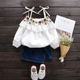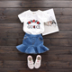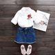 女童套装 2017夏季新款韩版儿童花朵短袖T恤+牛仔裙半身裙两件套