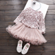 女童套装 2017春季新款儿童格子系带娃娃衫蕾丝短裙半身裙两件套
