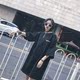 暗黑系宽松大码拼接绑绳不规则假两件气质连帽连衣裙女