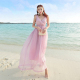 波西米亚长裙 海边度假沙滩裙 蕾丝镂空一字领抹胸露肩连衣裙短裙