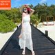 蕾丝拼接海边沙滩裙夏仙女装雪纺波西米亚中长裙显瘦度假连衣裙短