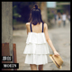女海边吊带短裙度假风荷叶边露肩沙滩裙蛋糕裙白色雪纺连衣裙仙夏
