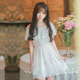 秋千梦日系甜美 2017春夏休闲短款吊带蕾丝连衣裙长裙两件套女