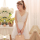秋千梦 甜美公主2017春夏新款镂空圆领蕾丝修身婚纱短袖连衣裙女