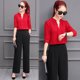秋装阔腿裤套装女装时尚气质v领长袖雪纺衫长裤两件套秋季新款潮