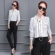 时尚套装女春季2017新款条纹长袖雪纺衬衫气质哈伦小脚裤两件套潮