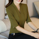雪纺衬衫中袖2017上衣职业女装v领寸衫衣春秋夏韩版百搭OL白衬衣