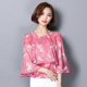 中长款修身短袖小衫2017夏季气质时尚喇叭袖百搭花色雪纺衫女上衣