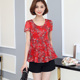 雪纺衫女短袖2017夏季新款中长宽松大码印花小衫上衣大码打底衫潮