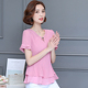 2017夏季新款女装大码雪纺衫短袖宽松V领小衫百搭上衣短款衬衫潮